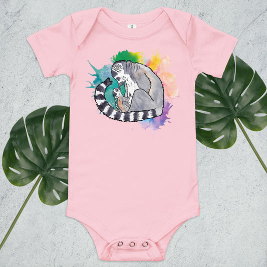Lemur Baby watercolor short sleeve one piece