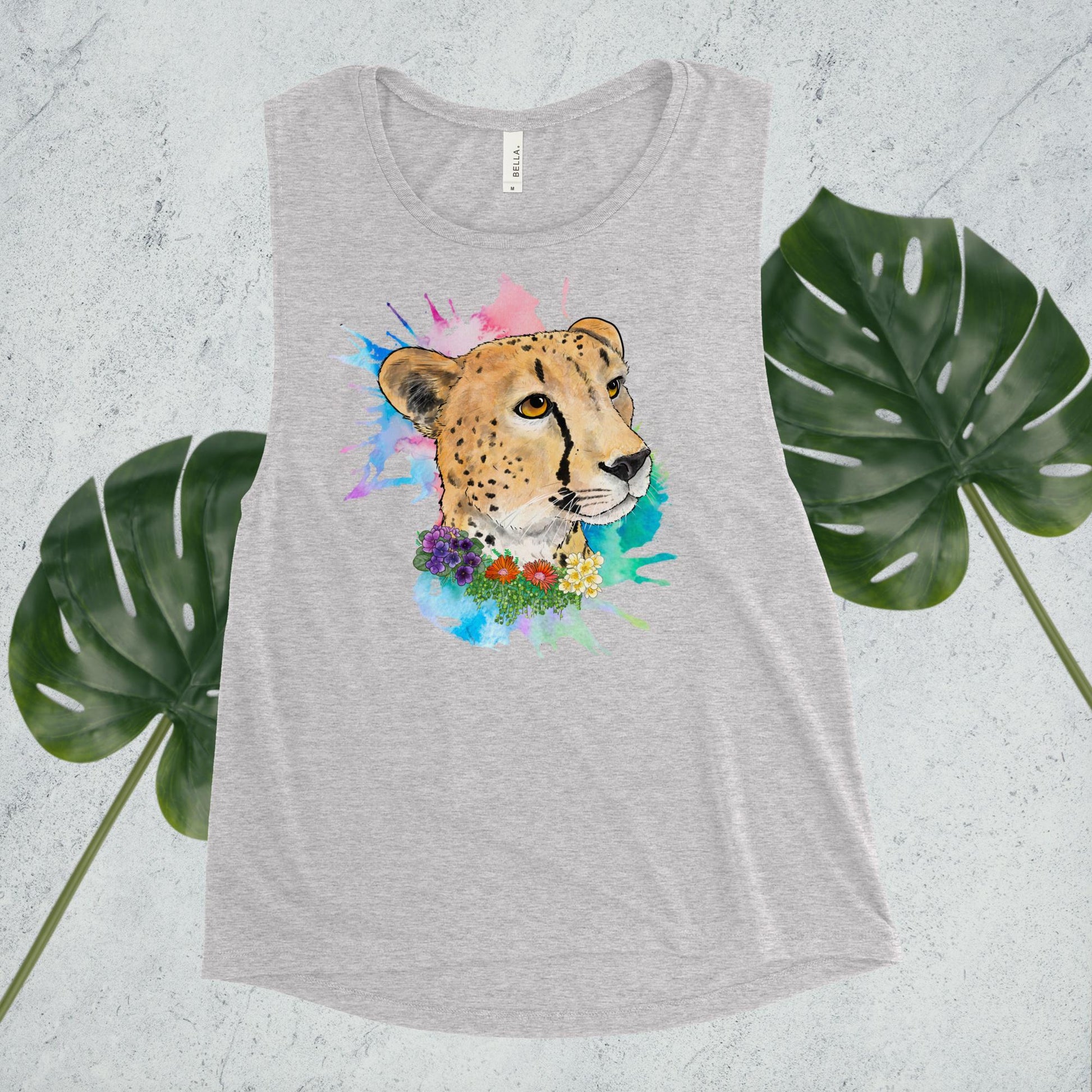 This comfortable muscle tank is soft and flowy with low cut armholes for a relaxed look.